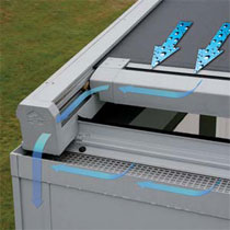Fixscreen防風遮陽簾專利技術,與無與倫比的布料張力技術相結合保 證了雨水一定會順隱藏式的水槽排出。即便是在布料沒有完全展開情況下,降雨也會按照設計的集成路線排走。