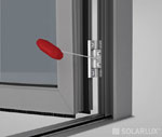 穩定性 上下連動天地栓伸縮24 mm, 可將門扇緊密的固定在邊 框的上、 下軌道中, 因此可以抵擋強風與增加門扇保全。 |
