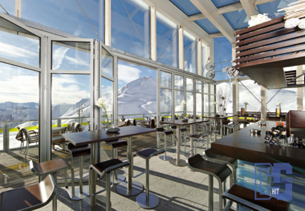 門扇高度 透過高科技的設計系統,門扇最高可達3500 mm。 此系列玻璃折叠門非常適合用在商業空間的進出大門。 |