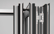 安全性 24毫米深的插銷能將門扇牢牢的固定在頂底邊框上, 確保可以抵 擋暴風和提供高的安全性。 |
