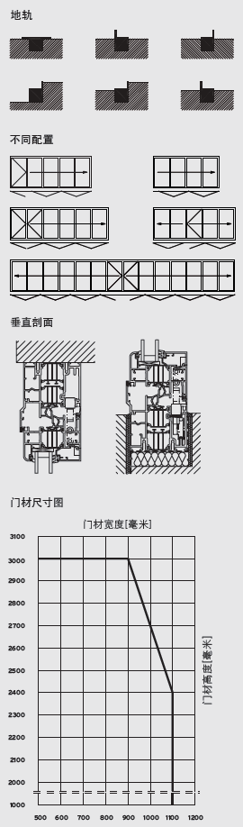 配件 隱藏式耐腐蝕不銹鋼配件保證導軌接觸處非常乾淨。 門扇始終與底軌接觸平穩、順滑。 |