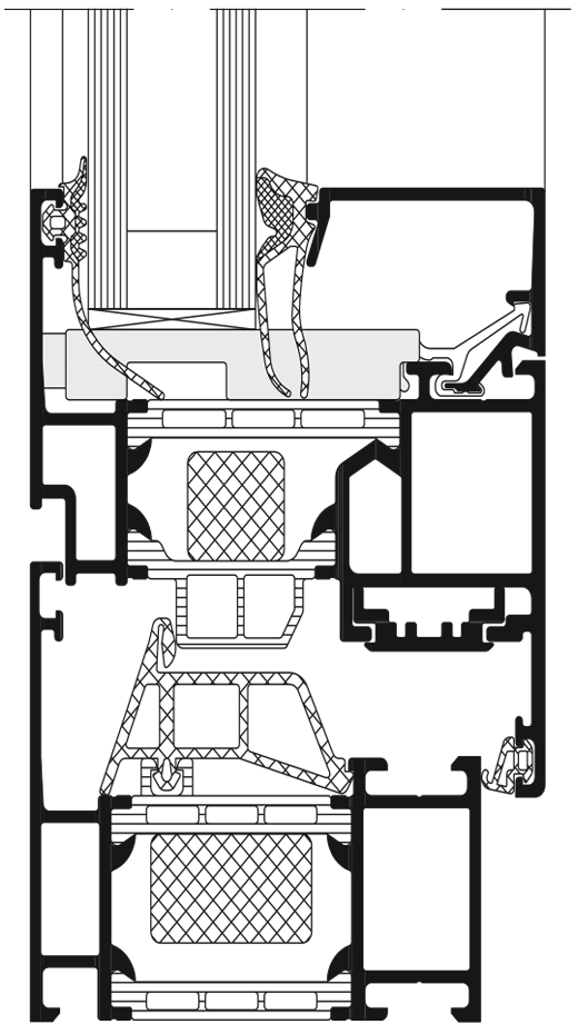 • 宽泛的型材种类,含可视面宽度至44 mm的竖框型材,假中挺扇和扇横格